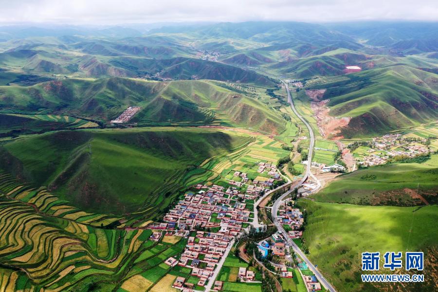 這是2020年8月12日拍攝的甘肅省甘南藏族自治州卓尼縣阿子灘鎮阿子灘村(無人機照片)。新華社記者 邢廣利 攝