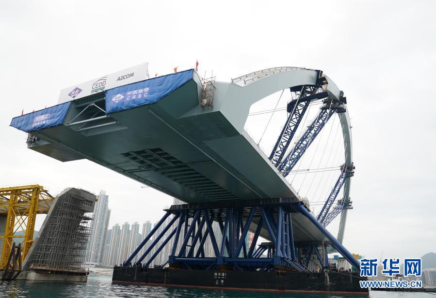 2月26日,將軍澳跨灣大橋主橋順利完成浮托安裝,浮托安裝總重達12000噸,總長214米,創造國內單體拱橋整體安裝的新紀錄。