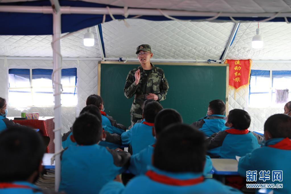 當日是青海果洛瑪多縣花石峽鎮藏文中心寄宿制小學震后復學第一天,學校邀請他以“國家、奮斗、團結”為主題,和孩子們進行交流。