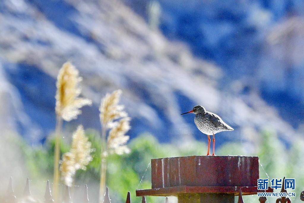 初夏,紅腳鷸在位于西藏拉薩的拉魯濕地國家級自然保護區內起舞覓食。