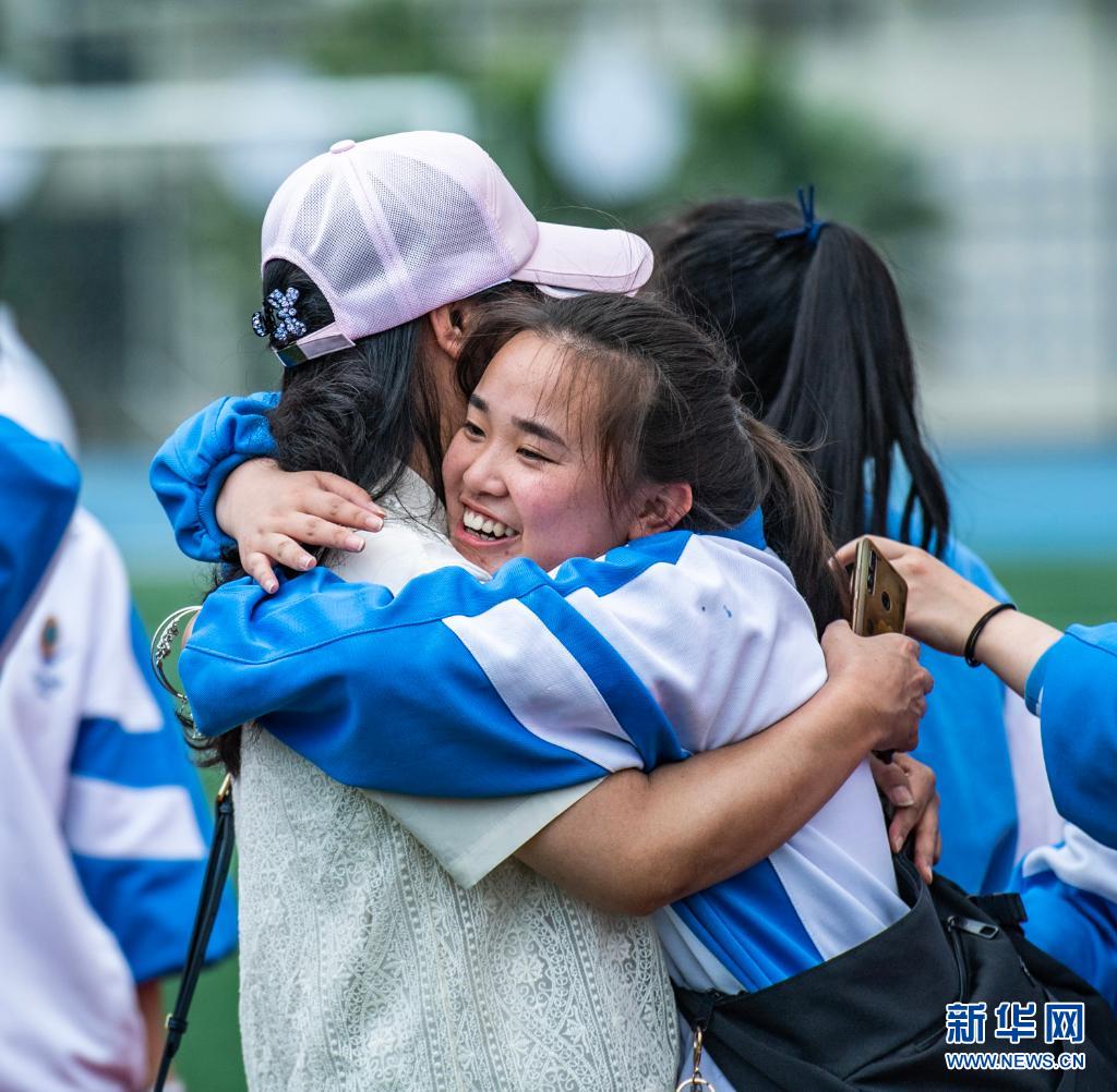 6月9日,烏當中學(xué)高三學(xué)生和老師擁抱。