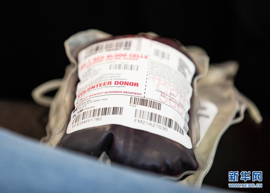 這是6月14日在美國芝加哥的大芝加哥地區紅十字會一獻血站內拍攝的血袋。新華社發(喬爾·萊納攝)