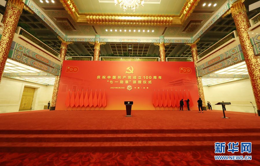 6月29日上午10時,“七一勛章”頒授儀式將在人民大會堂隆重舉行。新華網(wǎng) 陳杰 攝