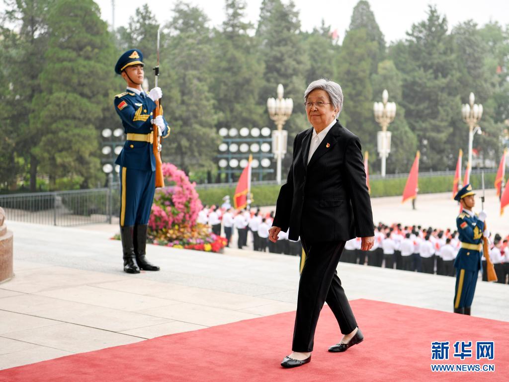 這是黃寶妹抵達人民大會堂。