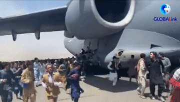 16日,上千人涌向喀布爾機場,他們有的人即使沒有護照和機票,仍然試圖登上飛機尋求離開阿富汗的途徑。