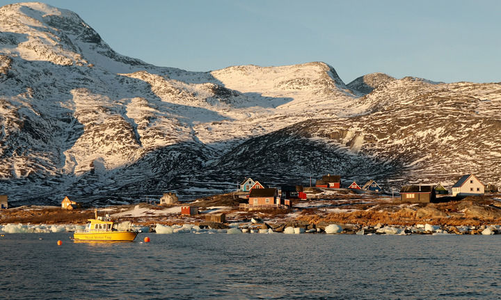 2月8日在格陵兰岛首府努克附近拍摄的村庄(李颖 摄)