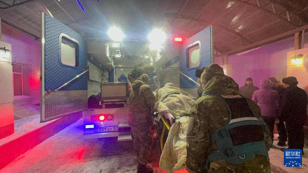 这张哈萨克斯坦紧急情况部提供的照片显示的是,救援人员在哈萨克斯坦阿克莫拉州运送伤者。新华社发