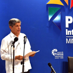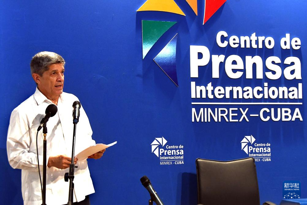 2月26日,在古巴首都哈瓦那,古巴外交部副部长德科西奥在记者会上通报有关情况。新华社发(华金·埃尔南德斯摄)