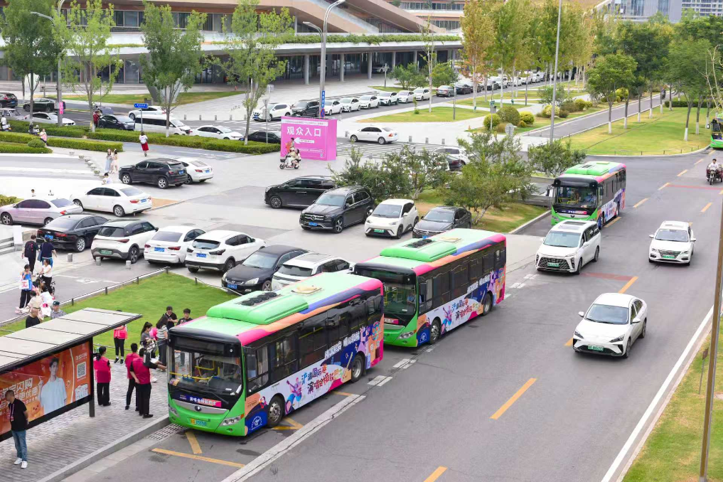 演唱会场馆外的接驳车。新华社发