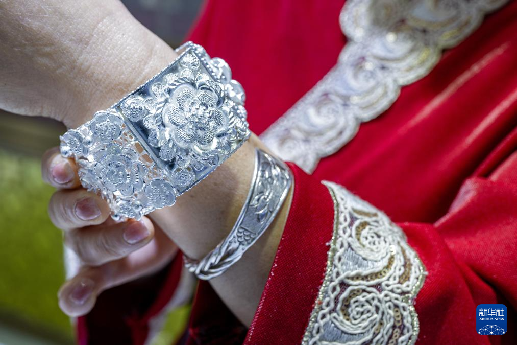 当地银匠依旧保持着手工制作的传统,经过熔银、锻打、拉丝、烧制、雕花、打磨、抛光等工序,制作出款式丰富、造型精美的银饰,人们在逢年过节或迎亲嫁娶等大型活动时都会穿戴在身上,盛装出门,成为一道又一道靓丽的风景。