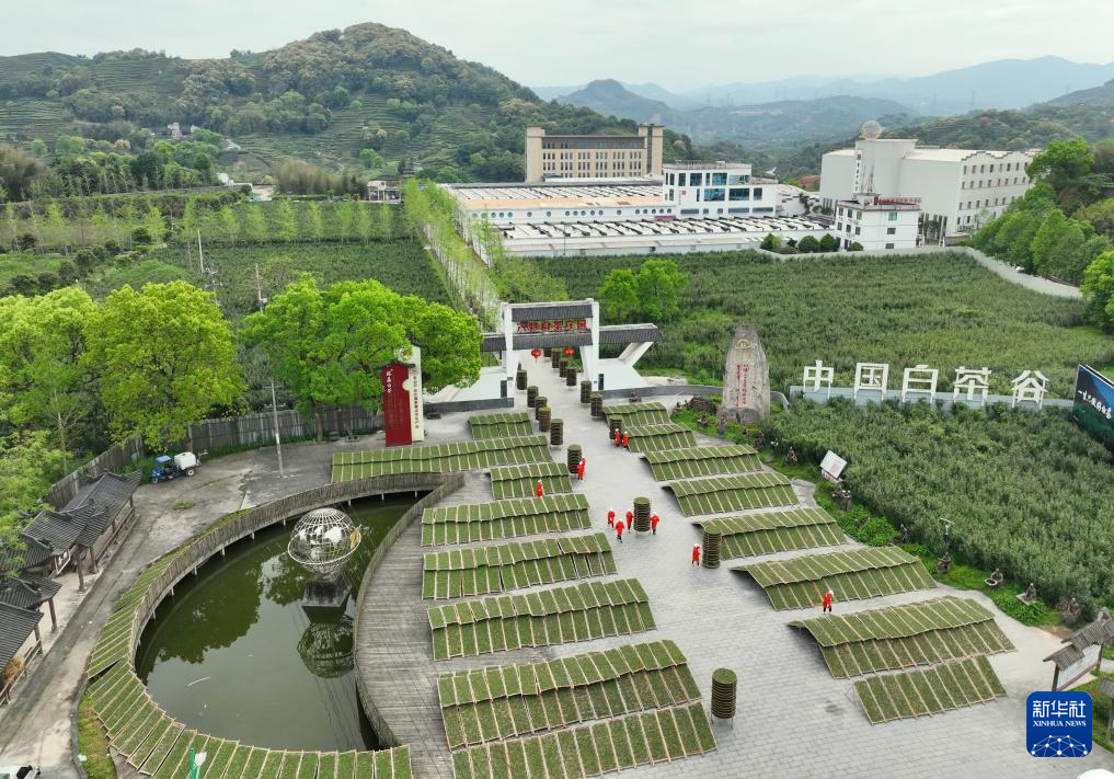 4月10日拍摄的福鼎市点头镇大坪村六妙白茶庄园茶旅结合旅游休闲项目“中国白茶谷”(无人机照片)。