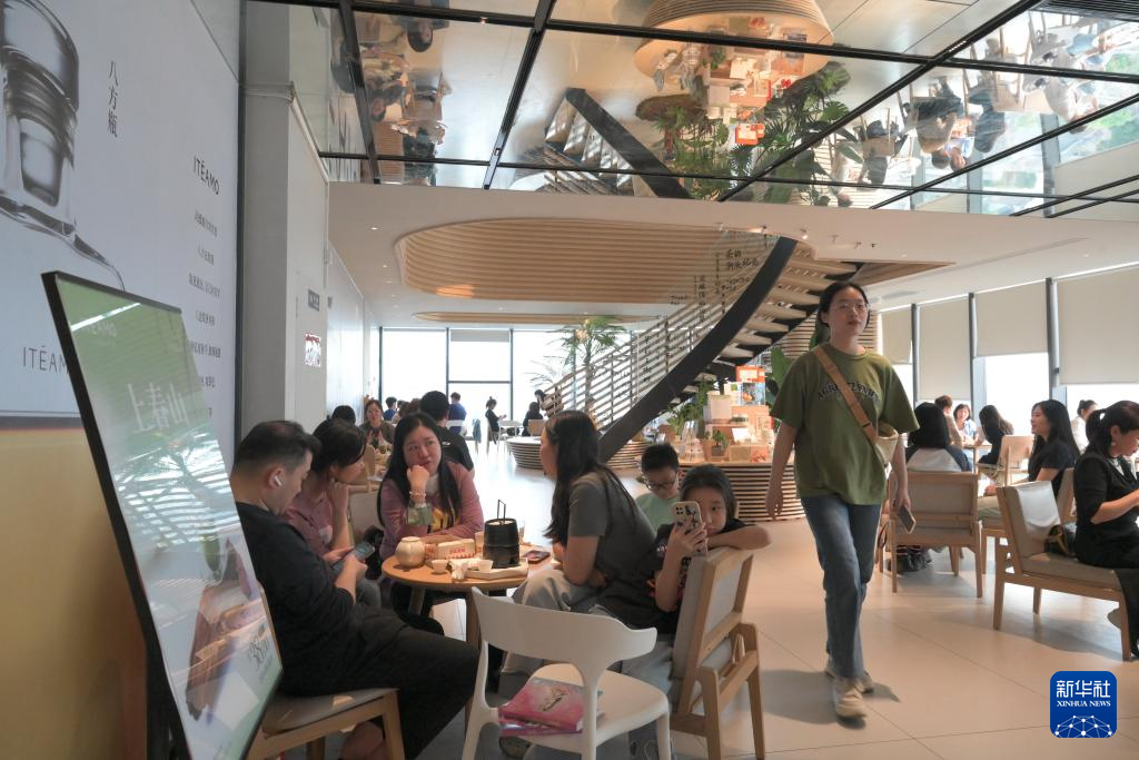 4月14日,消费者在福州东百大楼春伦ITEAMO茶空间品尝各式茶饮。