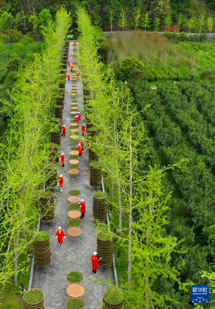 4月10日拍摄的福鼎市点头镇大坪村六妙白茶庄园茶旅结合旅游休闲项目“中国白茶谷”一角(无人机照片)。