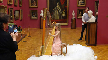 5月21日,在塞尔维亚首都贝尔格莱德,观众在“茶和天下·雅集”活动上观看采茶舞《时雨春风》表演。新华社发(王韡摄)
