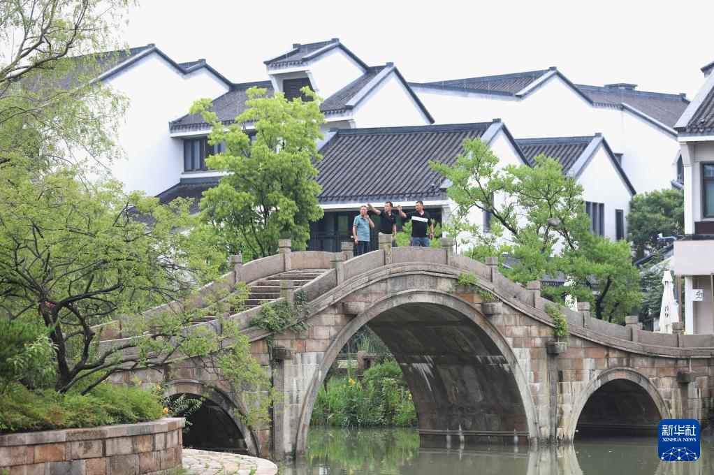 6月29日,游客在嘉兴芦席汇历史街区游玩。