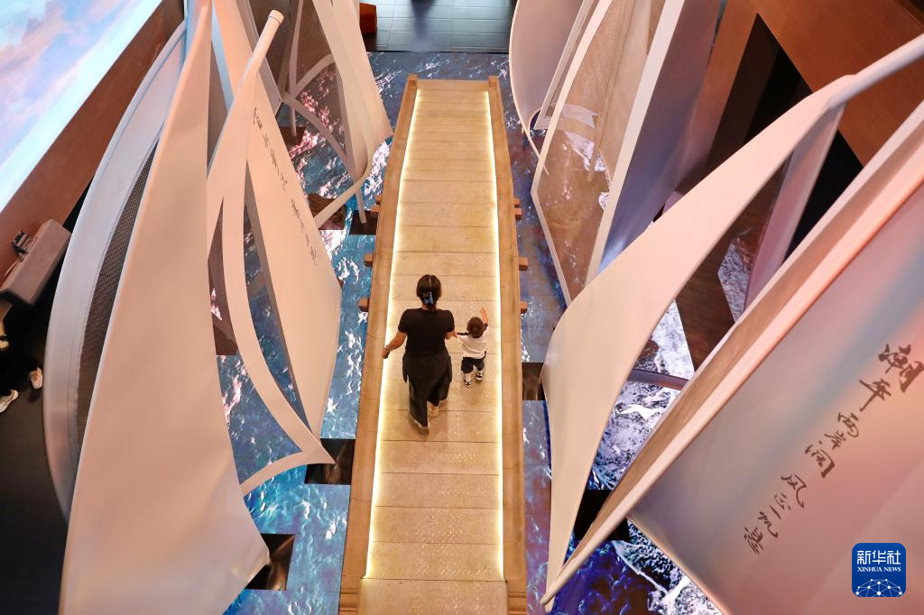6月29日,游客在芦席汇历史街区“大运河数字诗路e站”体验“千帆长虹”互动景观。