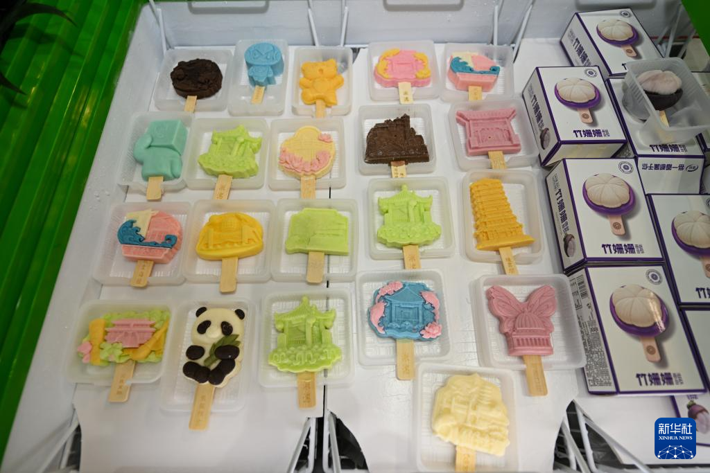 这是博览会现场拍摄的两款地域文旅主题文创冰淇淋(9月26日摄)。