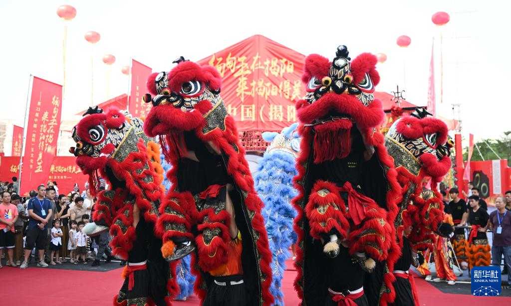 这是9月29日拍摄的第23届中国(揭阳)玉文化节开幕式上的醒狮表演。