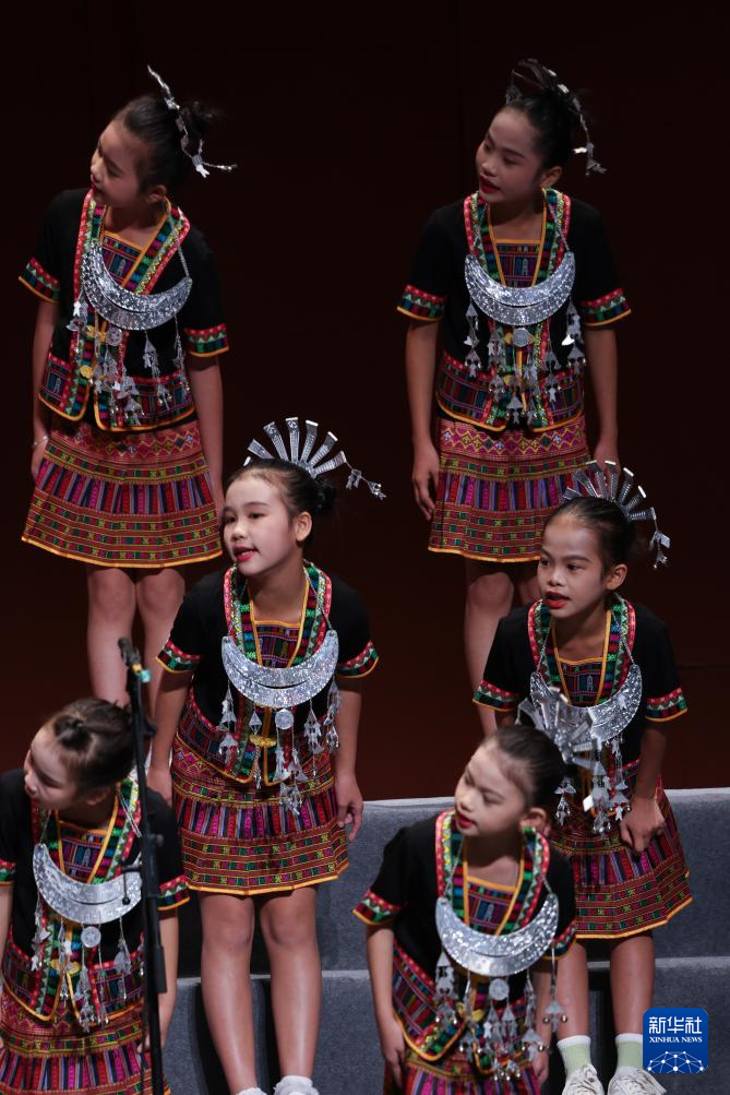 10月25日,五指山黎苗童声合唱团在“中法童声合唱友谊之桥”音乐会上演唱。