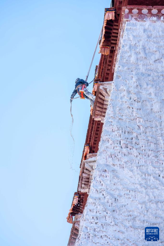 近期,西藏布达拉宫开始进行一年一度的外墙粉刷工作。布达拉宫管理处的工作人员和志愿者一起,将牛奶、蜂蜜、白糖、红糖、藏红花等粉刷原料与各色石灰混合后,调出白色、红色、黄色的专用涂料,再喷洒到布达拉宫外墙上,因此布达拉宫也被人们称为“甜蜜的宫殿”。独特配方的涂料更具黏性而且不易脱落,从而更好地保护古建墙体。