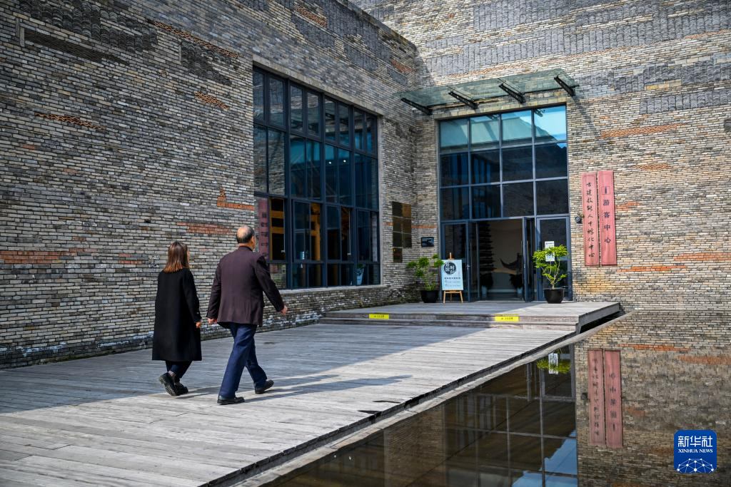 11月22日,黄大树(右)走进汇溪古建营造技艺博物馆。