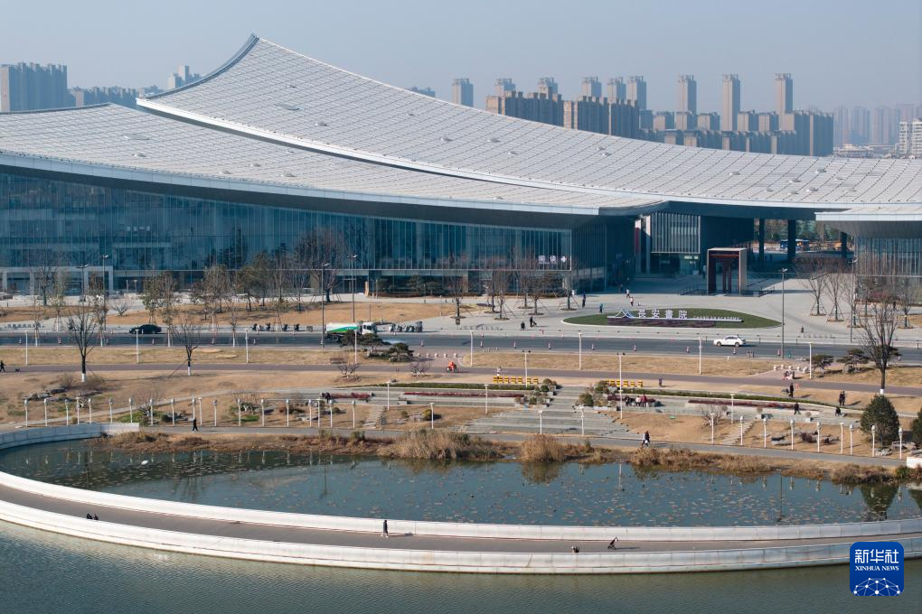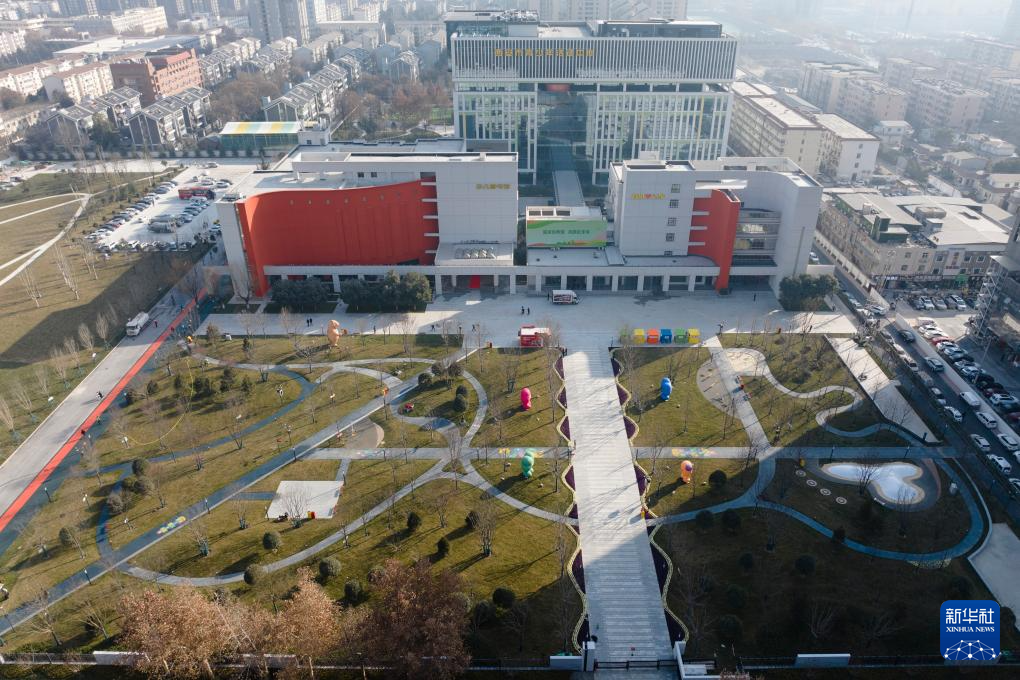 1月13日拍摄的经过翻新扩建而成的西安市青少年活动中心(无人机照片)。