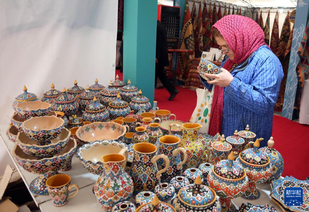 当日,第九届伊朗“曙光旬”国际手工艺品节向观众开放,展出了来自伊朗等约20个国家的7000多件手工艺品。