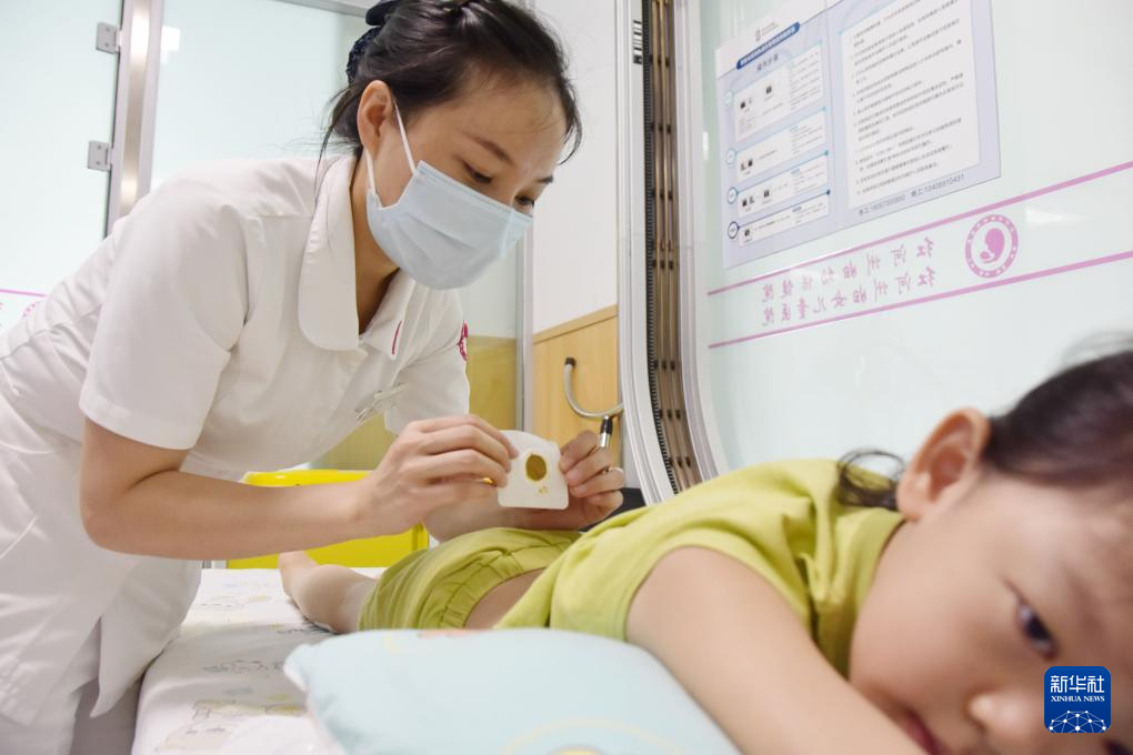 7月20日,在位于云南省蒙自市的红河州妇幼保健院,医护人员为一名小朋友贴“三伏贴”。以三伏贴为代表的“冬病夏治”是传统中医特色疗法。