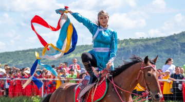 8月9日,演员在“风雅北疆·山水之约”主题文化演出上表演杂技。