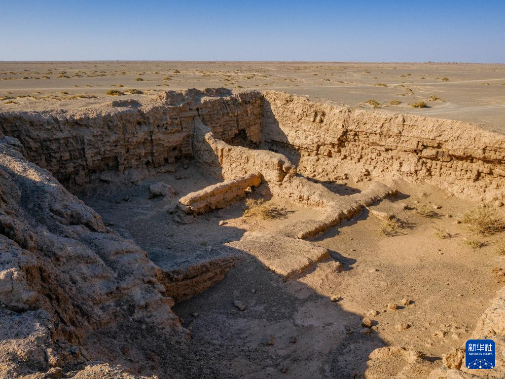 这是11月3日在内蒙古阿拉善盟额济纳旗拍摄的居延遗址中的汉代甲渠候官遗址(无人机照片)。