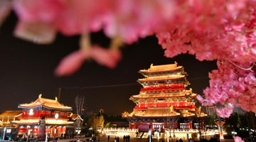 11月17日,民众在拉脱维亚首都里加举行的灯光节上欣赏被照亮的火药塔。