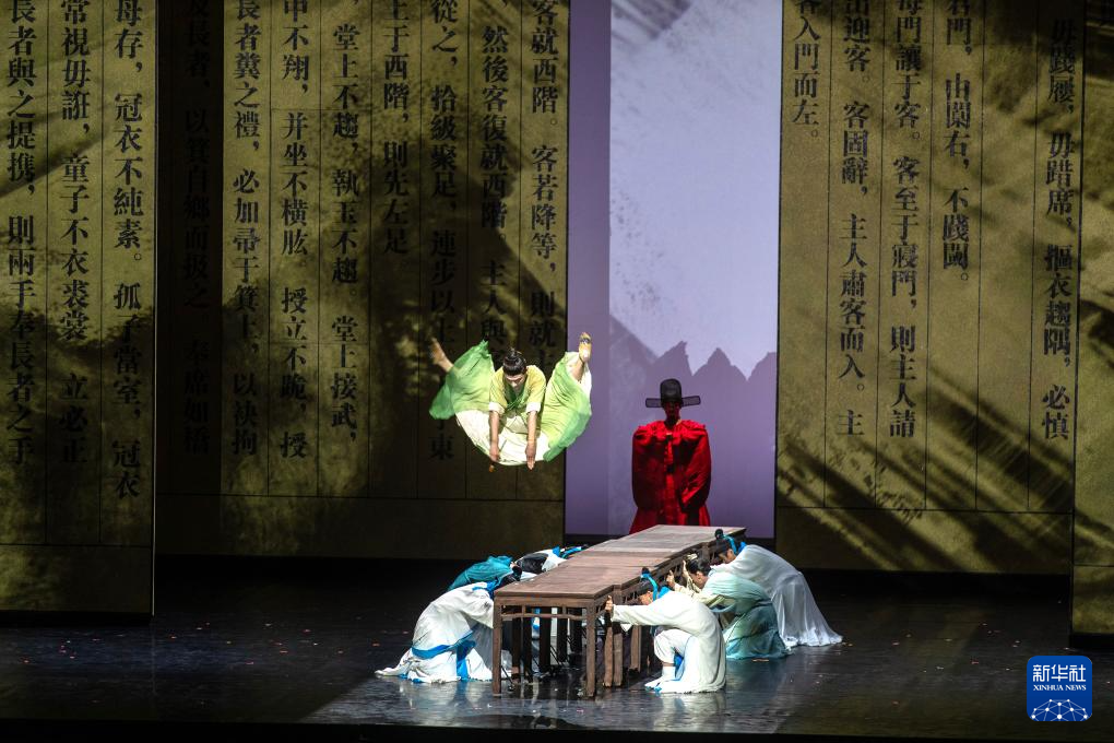 11月28日,中国舞蹈演员在希腊雅典圣诞剧场出演舞剧《天工开物》。