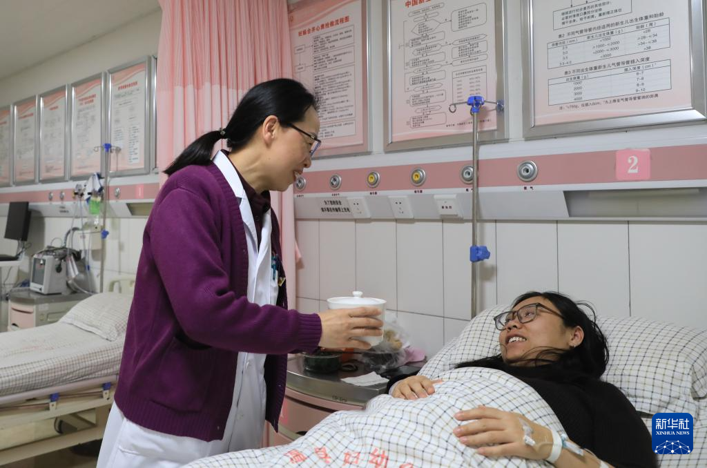 1月26日,河南省焦作市温县妇幼保健院的医护人员给患者送腊八粥。