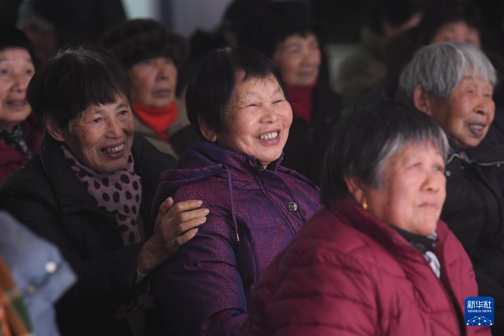 1月30日,在诸暨市浬浦镇陶姚村,村民在观看诸暨市越剧团表演。