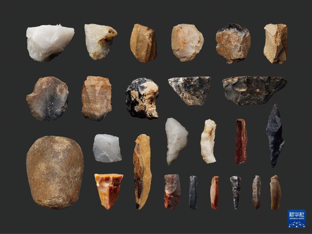 河南新郑市裴李岗石器时代遗址出土的旧石器晚期晚段典型石器(资料照片)。