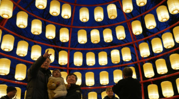 2月12日,市民在河南省济源市一处春节临时市场选购饰品。