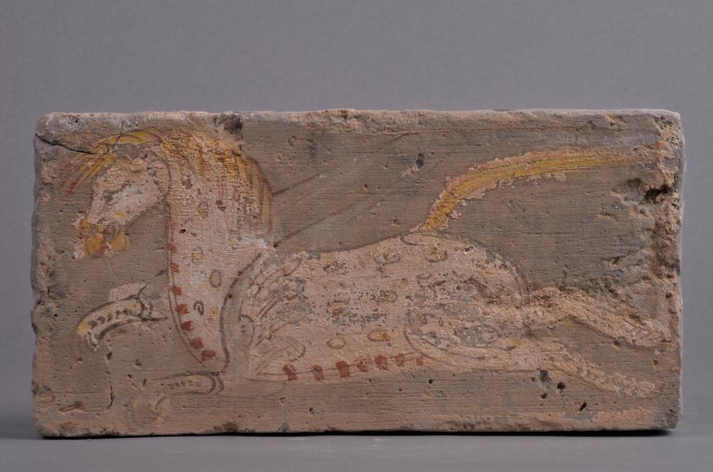 一级文物西晋神马画像砖出土于敦煌佛爷庙——新店台墓群。砖呈长方形,勾绘红色边框。砖上的马儿颈鬃披垂,身有圆斑,张开翅膀。敦煌市博物馆讲解员马雪丽说,古人以浪漫手法呈现振翅飞驰的马匹,反映出锐意进取的精神风貌。