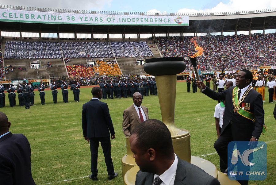 HARARE, April 19 (Xinhua) -- Zimbabwean President Emmerson Mnangagwa on Wednesday led the nation in commemorating the 38th independence anniversary, five months after he took over power from former President Robert Mugabe.