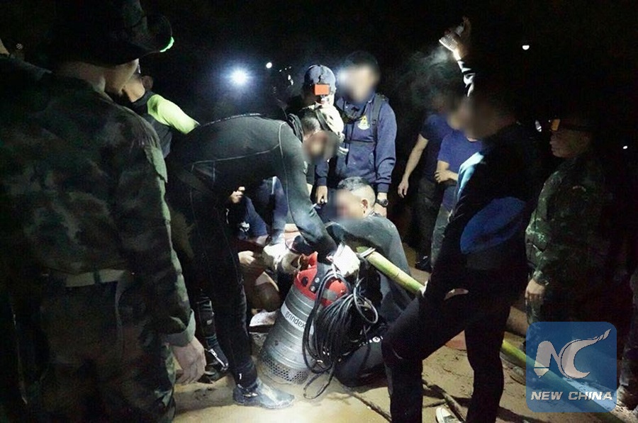Royal Thai Navy SEALs take part in rescue operation for 12 Thai teenagers and their football coach in northern Thailand's Chiang Rai Province, June 30, 2018. (Xinhua/Thai Royal Navy)