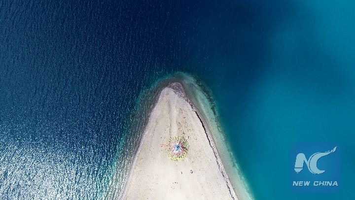 Aerial photo taken on May 27, 2018 shows the scenery of the Yamdrok Lake in Nagarze County of Shannan City, southwest China's Tibet Autonomous Region. (Xinhua/Jigme Dorge)