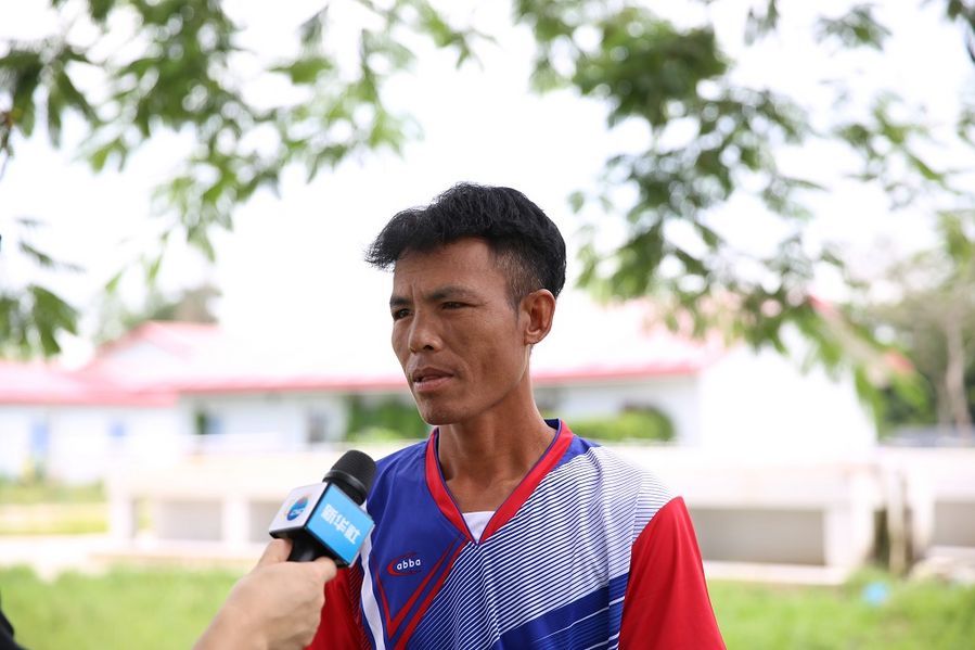 Baly Sipaseuth was interviewed with Xinhua in CREC-2 Vientiane beam fabrication yard of China-Laos railway On July 21, 2019. (Xinhua/Xiong Tianze)
