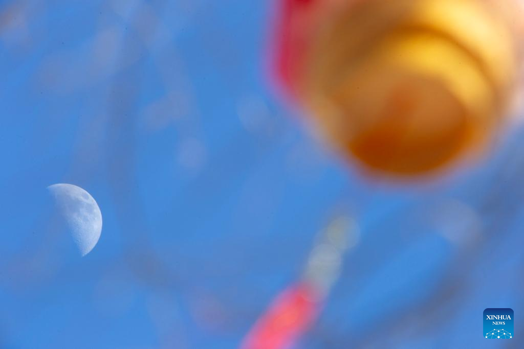 This photo taken on Feb. 24, 2026 shows the moon over Yimei District of Yichun, northeast China's Heilongjiang Province. The largest first quarter moon of the year appeared in the sky on Tuesday. The moon was near its perigee in orbit, approximately 370,000 kilometers from the Earth. (Photo by Li Jiaxing/Xinhua)