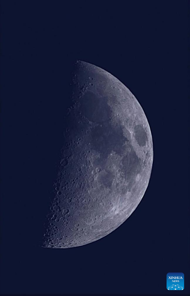 The moon is photographed through an intelligent astronomical telescope in Beijing, capital of China, Feb. 24, 2026. The largest first quarter moon of the year appeared in the sky on Tuesday. The moon was near its perigee in orbit, approximately 370,000 kilometers from the Earth. (Xinhua/Xing Guangli)
