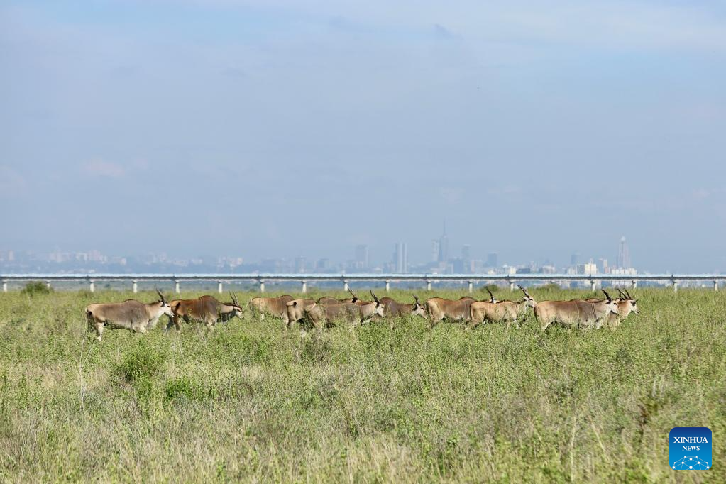 This photo taken on Feb. 26, 2026 shows a herd of elands at the Nairobi National Park in Kenya. The Nairobi National Park is one of the few capital-based reserves in the world. Spanning 117 square kilometers of savannah, forests, and wetlands dotted with valleys and seasonal lakes, the park shelters over 100 mammal species and 400 bird varieties. (Xinhua/Liu Qiong)