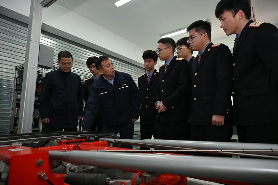 XI'AN, Feb. 28 (Xinhua) -- Dong Hongtao is a bullet train technician of China Railway Xi'an Group Co., Ltd. and a deputy to the National People's Congress (NPC). Since engaging in electric multiple unit (EMU) maintenance work in 2007, Dong has led his team to maintain over 120,000 EMU sets and handled more than 3,000 faults. He has been granted three national invention patents and 31 utility model patents. Dong has also been dedicated to the passing-on of technical skills, cultivating skilled talents for the industry through the national-level master technician studio led by him.