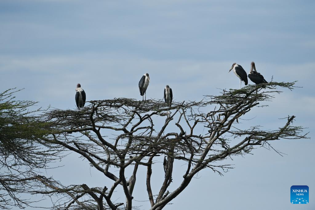 This photo taken on Feb. 26, 2026 shows marabou storks at the Nairobi National Park in Kenya. The Nairobi National Park is one of the few capital-based reserves in the world. Spanning 117 square kilometers of savannah, forests, and wetlands dotted with valleys and seasonal lakes, the park shelters over 100 mammal species and 400 bird varieties. (Xinhua/Liu Qiong)