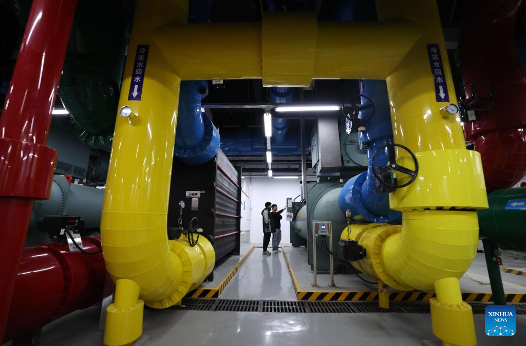 Engineers patrol the refrigeration station of an intelligent computing center of China Telecom at the Beijing-Tianjin Industrial New City Gaocun Data Intelligence Innovation Park in north China's Tianjin, Feb. 26, 2026. The Beijing-Tianjin Industrial New City Gaocun Data Intelligence Innovation Park is a pivotal platform for fostering the digital economy in Tianjin's Wuqing District. The park boasts six high-level data centers in operation and is home to over 300 data-driven enterprises. It delivers efficient, low-latency, real-time computing services to support businesses across the Beijing-Tianjin-Hebei region in sectors including finance, digital creativity, rail transit, and healthcare. Its computing service capabilities maintain a leading position in the region. (Xinhua/Sun Fanyue)