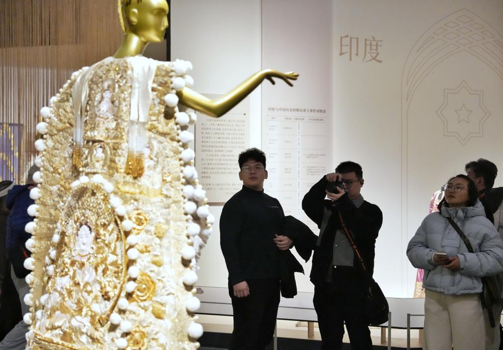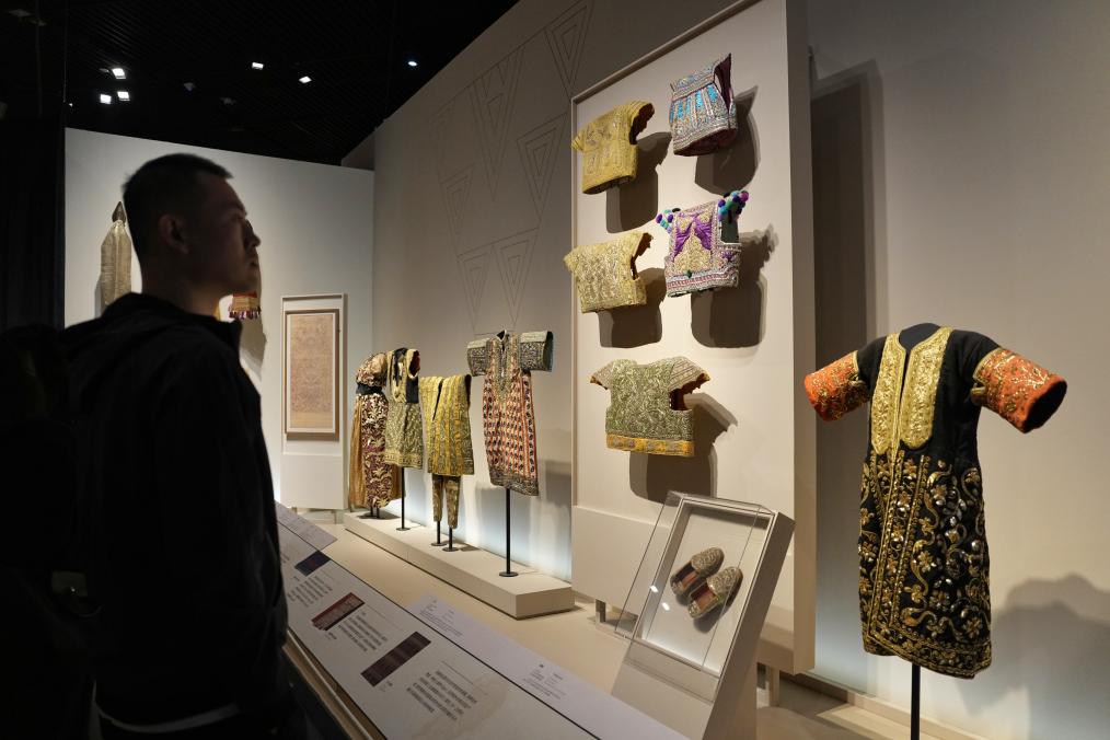 2月17日,观众在成都博物馆参观“金线——从北非到东亚的黄金服饰风尚”特展。