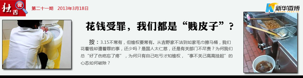 @食不果腹:【事不關己高高掛起】吉野家棄飯上桌,如家毛巾擦廁所,若是不遇3·15,想必事實必被埋沒,曝光丑態如此難,我沒遭遇干嘛管,人人都是此心態,社會早晚成病態。
