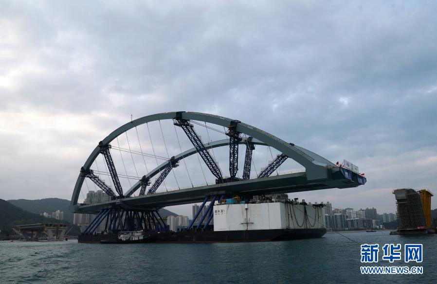 2月26日,將軍澳跨灣大橋主橋順利完成浮托安裝,浮托安裝總重達12000噸,總長214米,創造國內單體拱橋整體安裝的新紀錄。